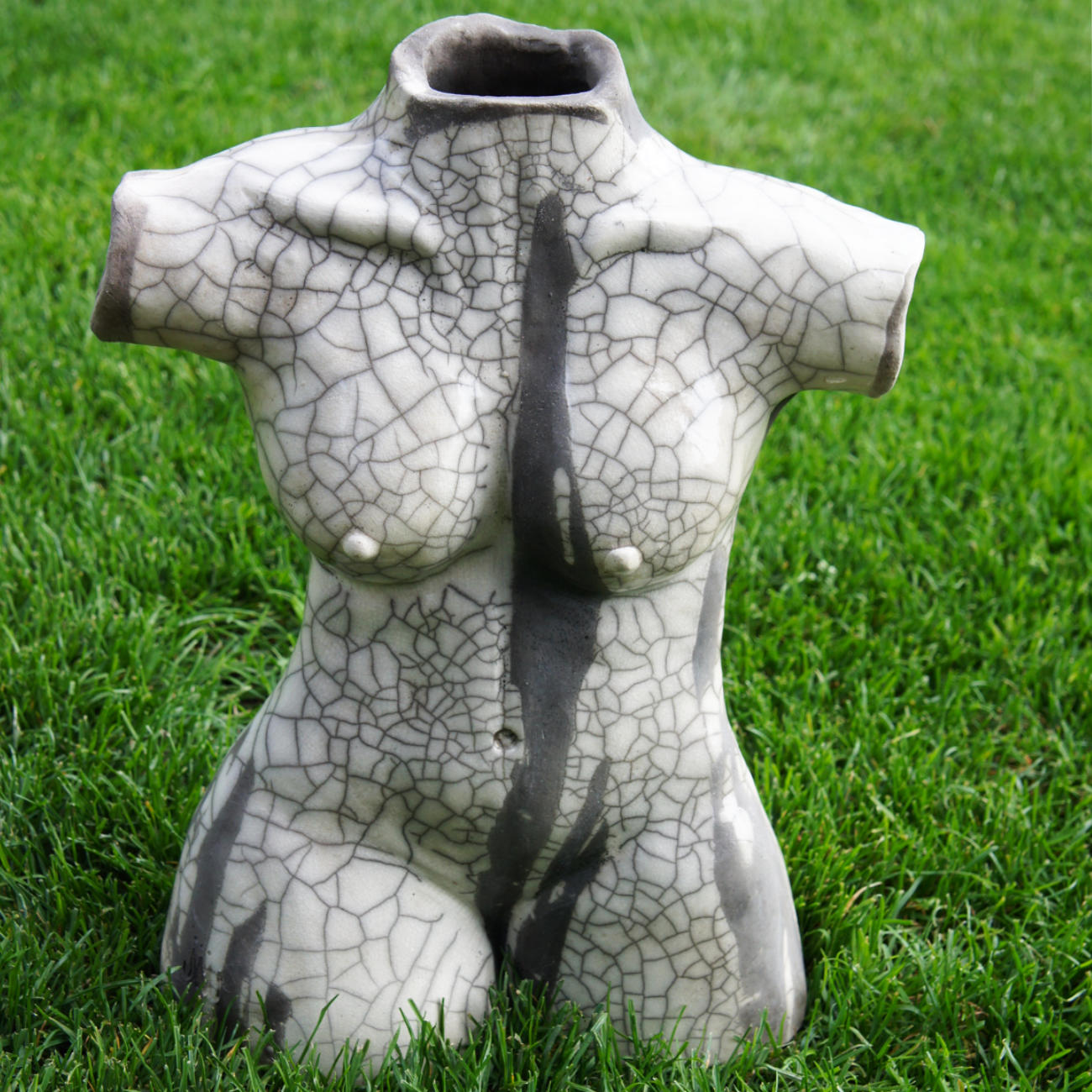 Die Tonfigur ‚Frauentorso‘ ist ein handgefertigtes Kunstwerk aus Ton, das in der Raku-Technik hergestellt wurde. Die Figur stellt einen weiblichen Torso dar und ist in schwarz-weiss gehalten, was ihr eine klare und minimalistische Ästhetik verleiht. Die Figur ist zum Aufhängen konzipiert und kann somit als Wanddekoration verwendet werden. Durch ihre handgefertigte Herstellung und die Raku-Technik ist jede Figur ein Unikat. Die Tonfigur eignet sich besonders als dekoratives Element in Wohnräumen und Schlafzimmern oder auch als Geschenk für Kunstliebhaber.